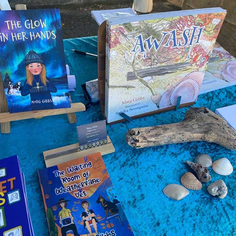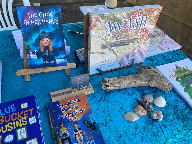 Join Marg at upcoming events and regularly at Mapleton Markets (contact Marg for dates) where readers of all ages are welcome to come along, say hello, and discover more about her stories, and get their books signed with a special message.